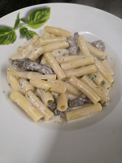 mit Hackfleisch-Sahnesoße und Champignons