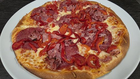 Champignons, Oliven, Peperoni, Artischocken und Salami